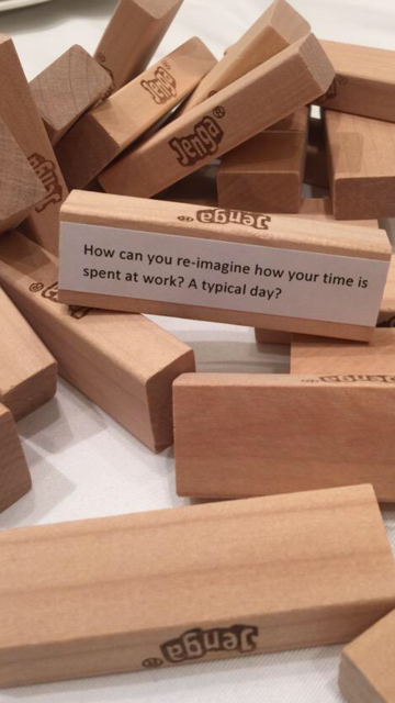 - How can we Re-Imagine Learning? Too often adult meetings are plagued with flip charts and post it notes. What starts as a nice attempt to hear all voices, ends with a routine task that lacks creativity. We know that children need play to be creative, so why not give adults this same opportunity? To re-imagine the principal role, we used Jenga. While finding balance with Jenga blocks, principals searched for the hidden questions and tweeted out their table responses to contribute to the greater group.